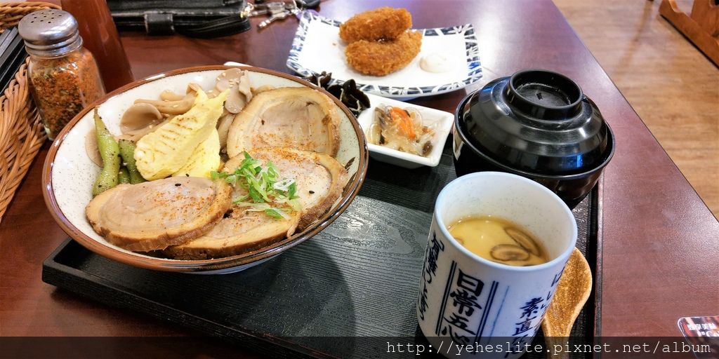 初志。日式炊丼、揚物-厚實叉燒配炊米,小菜蛋蒸入定食